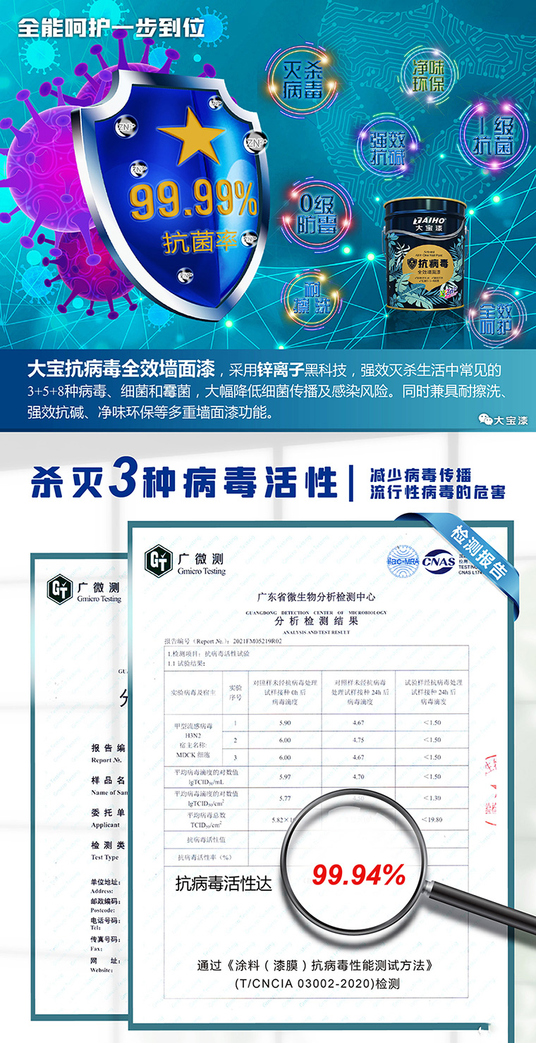 大宝抗病毒全效墙面漆,采用锌离子黑科技,强效灭杀生活中常见的3+5+8种病毒,细菌和霉菌,大幅降低细菌传播及感染风险,同时兼具耐擦洗,强效抗碱,净味环保等多重墙面漆功能,大宝超强“锌”生力,用专业和爱为家人筑起健康防护墙, 西西影视在线观看。