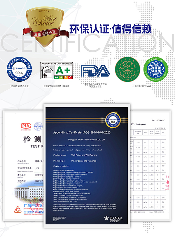产品通过GB18582-2020检测,有害物质均未检出,真正做到即刷即住,尽享自然安心。