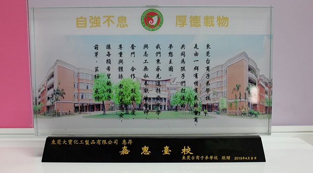 学校赠送东莞大宝化工纪念品