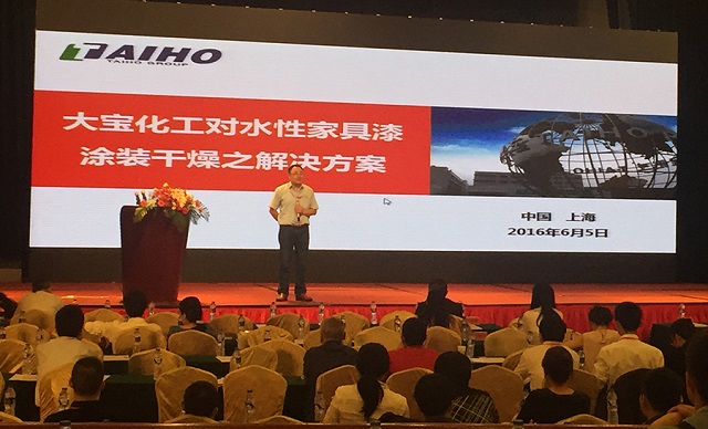 2016年6月5日—世界环境日,为涂料行业热切关注的,由中国涂料工业协会主办,中国水性木器涂料产业联盟、《中国涂料》杂志、北京涂博展览公司联合承办的以“打造美丽中国,从水性环保开始”为主题的第十届中国国际水性木器漆涂料发展研讨会在上海隆重召开。会议邀请了环保部、中国石化联合会、家具协会、涂料协会等领导参与、涂料行业上下游企业代表约500人参加。大宝化工陈春华总经理、培训学院黄文敏校长受邀出席了本次大会,黄校长在会上做了《大宝化工于水性西西影视官网涂装干燥之解决方案》专题报告,受到大会一致好评。