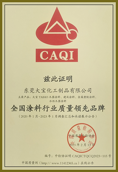 全国涂料行业质量领先企业