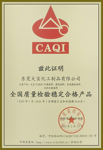 质量是企业的生命,也是企业参与市场竞争的核心竞争力之一。大宝漆成立30年以来,始终把品质置于首位,坚持走“以质取胜”和“质量兴企”之路。从原材料采购、生产、销售和服务等环节建立一体化管理体系,全面提升产品质量,推动企业高质量发展。