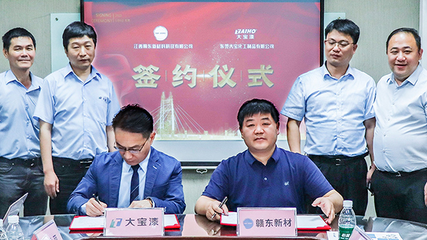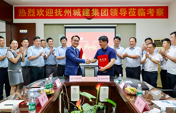 5月9日,抚州市城市建设集团有限公司党委书记/董事长吴仉华、副总经理张龙奇、战略规划部部长刘韬、江西赣东新材料科技有限公司总经理曾伟林等莅临东莞大宝化工参观考察,东莞大宝化经销事业部副总经理叶子琛,大宝装修漆全国销售总监张保中等陪同接待来访嘉宾。