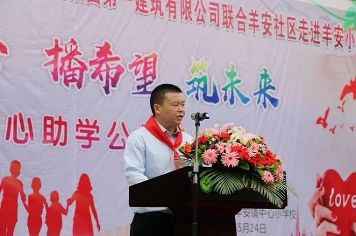 5月24日 西西影视,成都大宝化工携手中建一局第一建筑有限公司走进羊安小学,举行了“献爱心,播希望,筑未来”的公益活动,邛崃市教育局副局长孟许,成都大宝化工业务总监郑开国,中建一局集团第一建筑有限公司项目经理仇宏海,羊安镇人大副主席李春寒,羊安社区支部书记苟毅超等出席了此次活动, 。