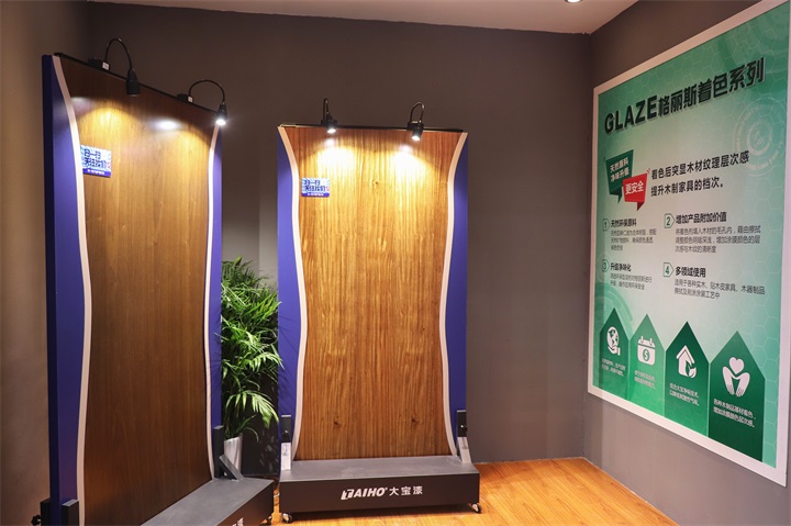 此外,还展示了大宝漆独创的只需三道色+3道漆的着色工艺——”33透明涂装系统”和着色后凸显木材纹理层次的“格丽斯着色系列” 西西影视官网, 。