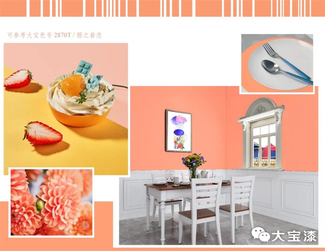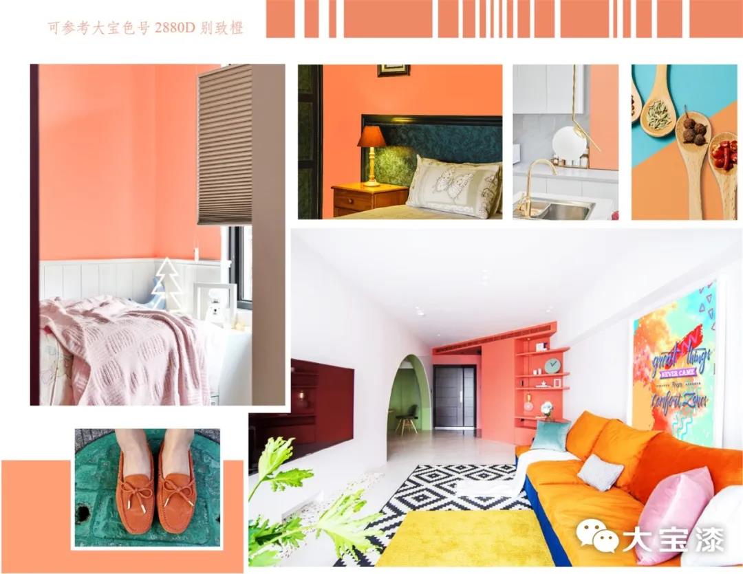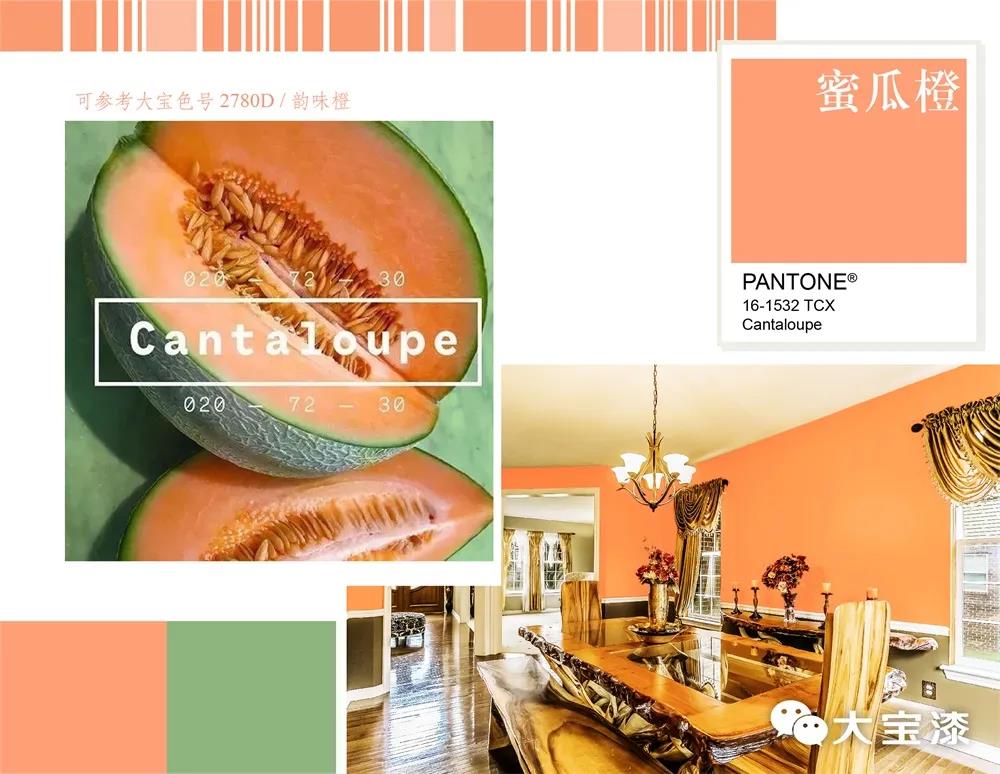 将蜜瓜橙带进家里,无论是墙面、家具,还是软装配饰,都散发出满满的青春活力,并且还带有甜蜜的味道,能让人拥有缤纷灿烂的愉悦心情,绝对是夏天甜蜜美好的色彩。